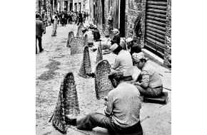 Inconsueta foto degli scalpellini comunali, al lavoro sul selciato di via di Città,...