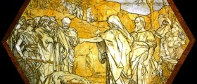 Re Acab entrato in guerra e ottiene alcune vittorie. Commette però un grave crimine uccidendo Nachab, proprietario diuna vigna vicina al suo palazzo, con lo scopo di usurpargliela. Al che Elia gli predice la morte imminente: la scena mostra il re prostrato ai piedi del profeta (I Re, 21, 21-22). Questa è forse la più emotiva delle scene disegnate dal Franchi ed è caratterizzata, come gli altri suoi esagoni, dai colori bianco, giallo e azzurrino usati per i mosaici, sui quali vennero scavati solchi nei quali inserire la pece nera, secondo la tecnica tradizionale.