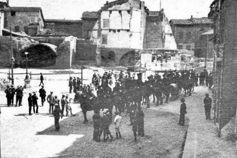 Immagine di grande importanza storica, che ritrae la la fase antecedente la costruzione dell'Ufficio delle Poste, iniziato a costruire nel 1918.