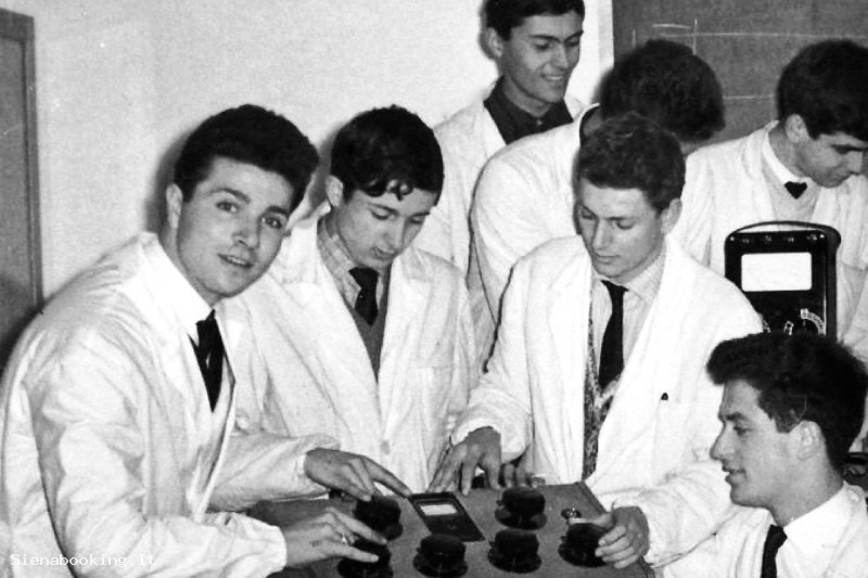 Splendida foto che ritrae alcuni studenti di quintadel corso di Chimica all'Istituto Tecnico Industriale Tito Sarrocchi.