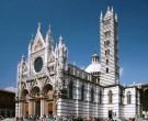 Nel luogo dove sorge la cattedrale, sono stati effettuati degli scavi che hanno portato alla luce una precedentecostruzione di periodo longobardo e franco. Nel XII secolo questa chiesa fu inglobata nella costruzione romanica della cattedrale con la facciata rivolta a sud, verso l'attuale "Facciatone" incompiuto del "duomo nuovo". Sembra che il Duomo sia stato consacrato il 18 novembre 1179. In effetti, solo nel XIII secolo la chiesa sarebbe stata trasformata in basilica, con la nuova facciata rivolta verso l'ospedale di Santa Maria della Scala. I lavori di fatto terminrono solo alla fine del secolo successivo e la cupola fu completata nel 1263. L'amministrazione dei lavori era gestita dai canonici locali ma, dal 1258 agli inizi del Trecento, fu affidata ai monaci dell'abbazia di San Galgano per la loro abilità come amministratori. Furono i monaci a chiamare Nicola Pisano e suo figlio Giovanni. Mentre Giovanni si dedicò alla facciata, utilizzando nella parte inferiore i rivestimenti marmorei provenienti dalle cave di Vallerano, il padre scolpì il pulpito, terminandolo nel 1268. Nel 1313 viene terminato il campanile, alto circa 77 metri. Con Siena al massimo del suo splendore, dovette sembrare che il duomo fosse comunque troppo piccolo per la città, si pensò quindi di ampliarlo in modo tale che l'attuale navata centrale diventasse solo il transetto e la facciata tornasse ad essere orientata a sud. Il progetto fu affidato a Lando di Pietro con la delibera del Consiglio della Campana del 23 agosto 1339. A causa della peste del 1348 e di alcuni crolli strutturali, nel giugno del 1357 si decise l'interruzione dei lavori. Dopo qualche anno, ripresero i lavori e nel 1376, la costruzione della parte superiore della facciata venne affidata a Giovanni di Cecco. Poi, nel 1382 vennero alzate le volte della navata centrale determinando il completamento del Duomo.