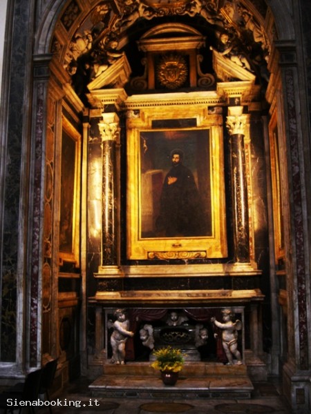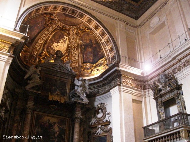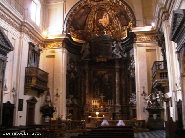 La Chiesa di San Vigilio è dedicata a San Vigilio Vescovo e Martire. Fondata per volere della famiglia Ugurgieri, è ricordata a partire dal XII secolo. Tra la fine del XVI secolo e gli inizi del XIX fu dotata della facciata odierna. Attualmente è sede della Cappella Universitaria di Siena. All'interno spicca il maestoso soffitto ligneo a cassettoni con tele di Raffaello Vanni esprimenti il Giudizio Universale. La chiesa si segnala anche per la ricca ornamentazione scultorea. Fu fondata a Siena dalla famiglia Ugurgieri nel XI secolo ed istituita come parrocchia. Nel 1131 fu donata ai monaci Camaldolesi da Guinigi di Ringhieri. Nel 1153 fu distrutta totalmente da un incendio e nel 1218 fu ristrutturata dagli stessi Camaldolesi che vi risiedettero fino al 1420. Nel 1556 venne ceduta alla Compagnia di Gesù e cessò di essere parrocchia. Nel 1759, soppressi i Gesuiti, fu acquistata dai Vallombrosani che rifecero la facciata su disegno di Antonio Matteucci. Nel 1798 i fratelli della Buona Morte chiesero a Papa Pio VI di istituirvi la Congregazione della Donazione Perpetua del Santissimo Sacramento. Nel 1816 il Granduca Ferdinando III fece dono di questo sontuoso locale alla Università Senese. La Congregazione tornò stabilmente ad officiare nella Chiesa di San Vigilio accollandosene il mantenimento e corredandola. Il 26 agosto 1991 Gaetano Bonicelli, Arcivescovo di Siena-Colle Val d'Elsa-Montalcino eresse, presso la Chiesa di San Vigilio, l'opera denominata Cappella Universitaria di Siena con l'intento di assicurare continuativamente la presenza della Chiesa di Siena nel mondo dell'Università. La chiesa ha il soffitto ornato di quindici grandiosi comparti del pittore senese Raffaello Vanni con cornicioni intagliati e rosoni messi riccamente a oro. Le cappelle e gli altari sono di ricchi e fini marmi. Altare maggiore fu fatto costruire dai fratelli Marcello e Lattanzio Biringucci. In mezzo vi ha un ricchissimo ciborio tutto incrostato di pietre dure ed è ornato di laminette di bronzo dorato. Sotto la mensa vi sono molte reliquie di santi martiri, presumibilmente trasportate dai Gesuiti dal Giappone. Altare del Santissimo Nome di Gesù sotto la sagrestia è di marmo, scolpito da Alessandro Redi e da Dionisio Mazzuoli. Il Nome di Gesù in bronzo dorato, il Sant'Ignazio, il beato Giovanni Colombini e il San Bernardino ad alto rilievo sono di bronzo al disegno del Bernino eseguiti in Roma per ordine del Cardinale Flaminio del Taja. Nel mezzo dell'altare vi è la reliquia di un santo martire.
