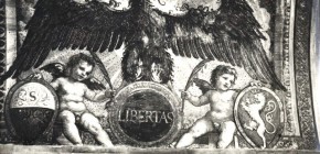 Una delle scene di giustizia romana affrescata sul soffitto della Sala del Concistoro del ...
