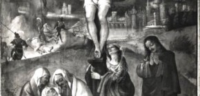 Nella grande tavola principale il posto d'onore, al centro, è dato dalla Crocefissione, di...