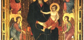 Maestà, pala d'altare di fronte Duomo di Siena,tempera ad olio, 43 × 46 cm....