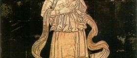 Last of the left aisle, was put in the report (by Pecci, 1752), with a payment to Benvenuto di Giovanni dated 18 May 1483 for drawing a picture of that person. It was restored between 1864 and 1865. Figure sleek and slender, with an attitude of composed monumentality typical of the artist is dressed in a rich drapery, veils fluttering on the sides and a pointed hat, the dynamic pattern of the veils is slowed by symmetry, enhancing the quiet statuesque figure . The table linked to a cherub in the top right reads: nascetur christus in bethlehem. annunciabitur ruling in nazareth tauro peaceful fundatore quies. or felix mater cucius ubera illum lactabunt ("Christ is born in Bethlehem and Nazareth announced, under the reign of the founder bull for a peaceful rest. O happy mother whose breasts the breastfeeding").