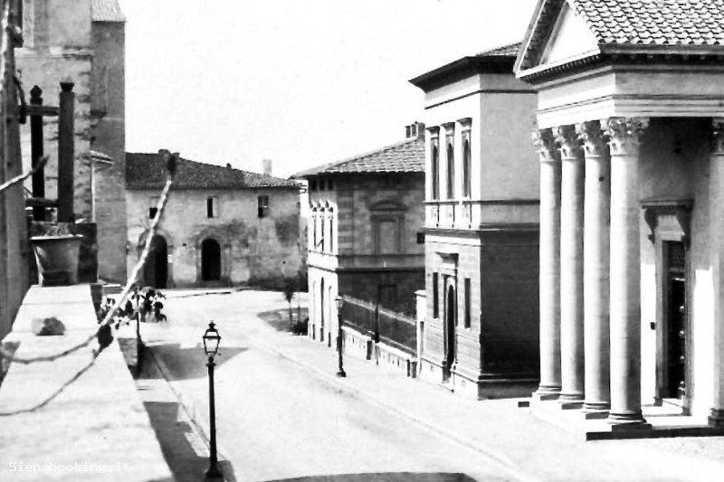 Si tratta di via Curtatone agli inizi del secolo scorso, quando ancora, al posto della piazzetta di San Domenico da cui si accede al chiostro, c'era un edificio demolito, non sappiamo quando.