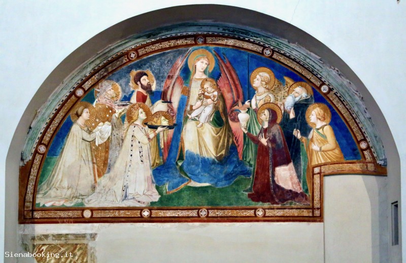 Inside the Piccolomini Chapel within the church, the famous fresco depicting the Maestà by Ambrogio Lorenzetti is visible in a lunette. The fresco, which is the oldest work preserved in the church, was saved only because the renovations carried out by the Piccolomini family resulted in the chapel's massive altar being placed against the wall of Lorenzetti's Maestà.