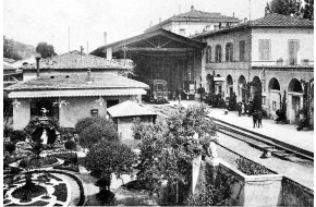Cartolina fotografica ritagliata e restaurata, dove si vede la vecchia Stazione Ferroviari...