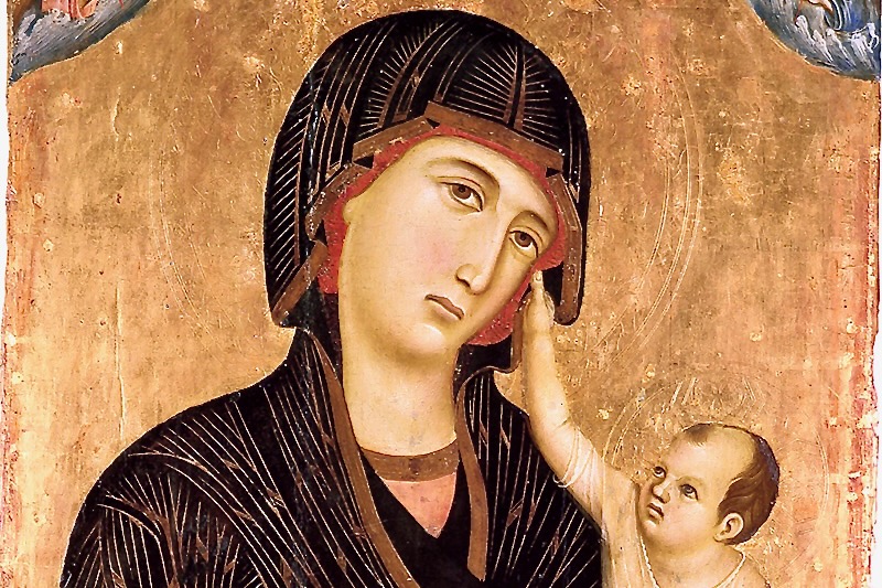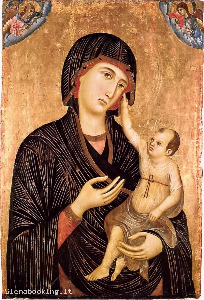 The Madonna di Crevole Crevole is located in the Opera Museum of the Cathedral of Siena. In this work the models of his formation are evident: the schematic drapery and the use of gold from Byzantine painting, elements deriving from the Gothic miniature and typically Byzantine iconographic motifs.