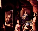 The fresco measuring 248 x 194 cm, is complemented by grotesque grooved wooden skirts.
