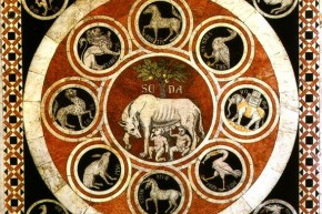 012 Tarsia pavim. della navata centrale - Lupa senese e simboli città alleate