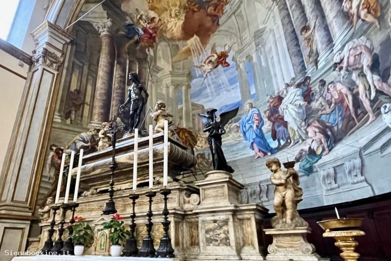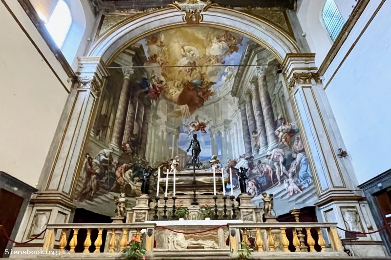 Questo venne realizzato nel 1731 da Sebastiano Conca, un artista napoletano. L'opera è imponente e studiata nell'aspetto prospettico particolare, dovuto alla forma non a croce latina della chiesa stessa. Rappresenta la Piscina probatica, riferita ad un passo del Vangelo di San Giovanni dove si descrive come gli infermi sostino vicino alla vasca sperando in una guarigione miracolosa. Si tratta dell'ultima committenza importante voluta dal governo dell'adiacente ospedale di Santa Maria della Scala. Nella chiesa, sul muro laterale destro, si trova l'organo.