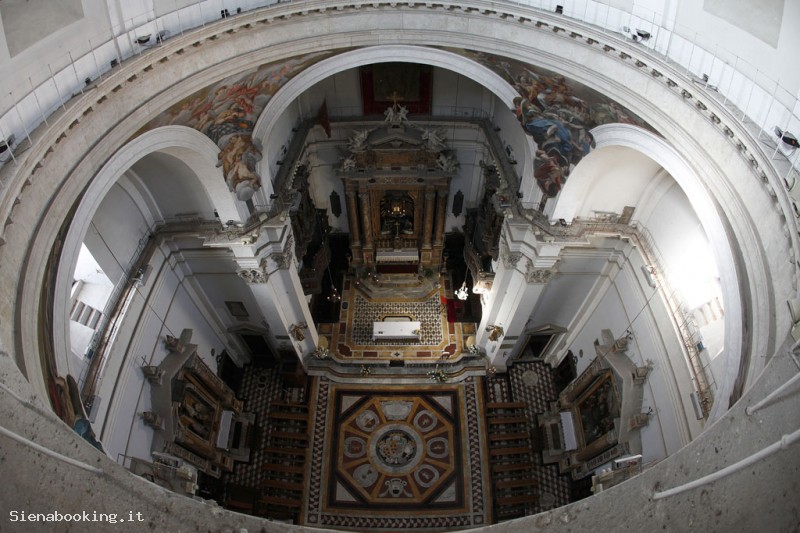 In the basilica is traditionally brought the drapery won after the Palio of 2 July by the procession of the winning district.