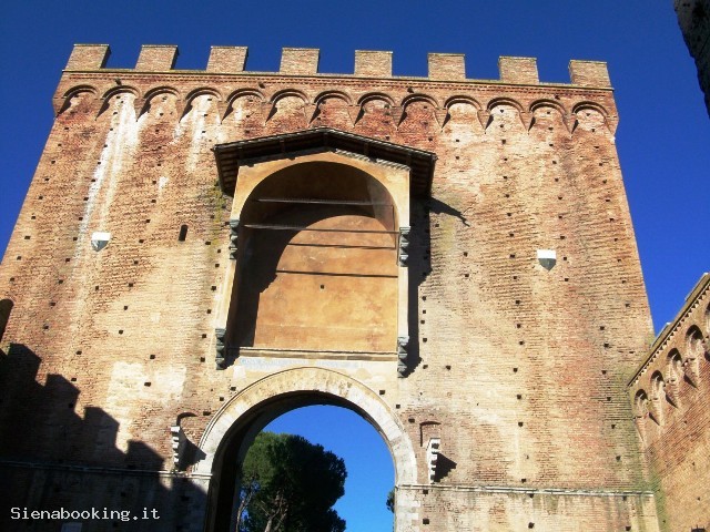 Porta Romana è una delle antiche porte nelle mura fu iniziata nel 1328 con Agnolo di Ventura e Agostino di Giovanni ; nel 1447 venne commissionata a Stefano di Giovanni detto il Sassetta la pittura che la doveva ornare con la raffigurazione della Vergine a impetrare la protezione divina sulla città. La raffigurazione si stendeva con una Gloria di angeli nel sottarco e con l' Incoronazione della Vergine nell'arcone centrale.