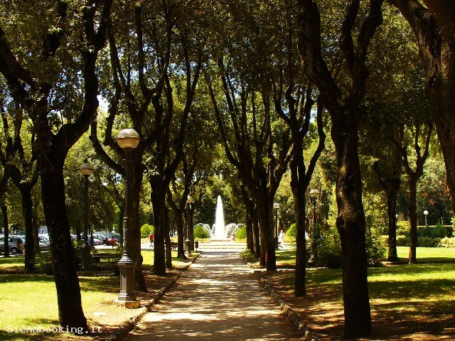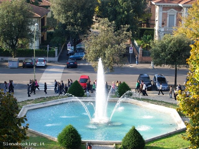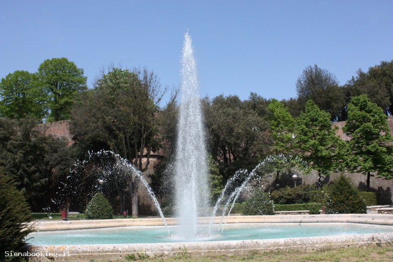 Si trova nel Parco della Rimembranza, la fontana è caratterizzata da un'ampia vasca circolare posta a ridosso della Fortezza Medicea. Il getto d'acqua centrale, dopo un lungo periodo di chiusura, è stato recentemente riattivato.