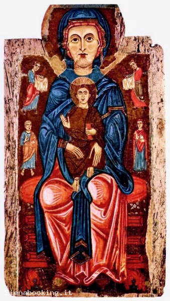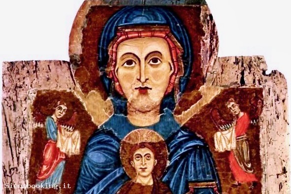 Si tratta dell'opera del Maestro di Tressa, con una struttura simile a quella della Madonna di Tressa: occhi che guardano in alto, volti resi con linee non sfumate di luci e ombre, colori basilari e accesi, in cui si notano però dei miglioramenti derivati dall'esempio del lucchese Berlinghiero Berlinghieri e di altre correnti figurative, come le striature con sopraccolori più chiari nel panneggio, il maggior movimento delle gambe di madre e figlio, la più familiare presa di Maria sul Bambino.