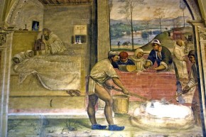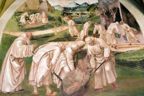 24 - Come Benedetto resuscita lo monacello cui era caduto lo muro addosso