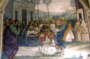 33 - Come Benedetto fa portare il corpo di Cristo sopra al monaco che la terra non voleva ricevere