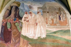 31 - Come Benedetto appare a due monaci lontani e loro disegna la costruzione di uno monastero