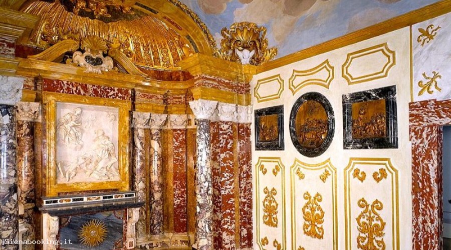 Represents one of the greatest Baroque episodes, the beautiful chapel of the Blessed Ambrose Sansedoni, in which Mass is celebrated every year in his suffrage, in the presence of the city authorities.The chapel is inserted inside the Palace which is characterized by a very impressive decoration: the frescoes of Melani and Ferretti, the dell'Anderlini fake architecture, sculptures and bronzes by Mazzuoli Soldani and Foggini.