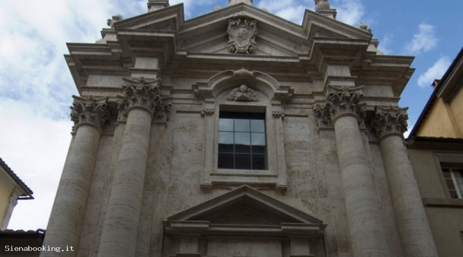 La chiesa di San Giorgio fu edificata in via Pantaneto su una struttura precedente del 1081, consacrata a San Giorgio poiché patrono delle milizie senesi durante la battaglia di Montaperti del 4 settembre 1260. Il campanile, edificato insieme alla chiesa, è caratterizzato da 38 finestrelle che si aprono lungo i sui quattro lati, che rimandano al numero delle Compagnie Militari senesi che presero parte alla battaglia. La facciata è caratterizzata da due colonne di ordine gigante e dallo stemma del cardinale Anton Felice Zondadari promotore del rifacimento. All'interno, spicca il policromo monumento funebre al pittore Francesco Vanni, realizzato dai figli nel 1656. Nel transetto si trovano i monumenti funebri di due esponenti della famiglia Zondadari.