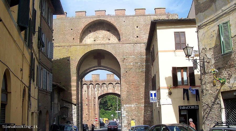 E’ una delle più antiche porte della cinta muraria. La prima costruzionerisale al 1230, ma fu certamente ristrutturata ed ampliata successivamente. La porta attuale sembra sia stata eretta nel Trecento, ed è costruita interamente in mattoni, con un antemurale di protezione. Sul fianco sinistro del prospetto interno è ancora presente un affresco raffigurante la Madonna