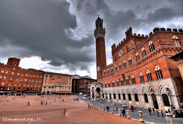 Piazza del Campo è, storicamente, la piazza principale della città di Siena. Unica per la sua particolare e originalissima forma a conchiglia, è rinomata in tutto il mondo per la sua bellezza ed integrità architettonica e per essere il luogo in cui due volte l'anno si svolgono i due Palii. Lo spazio che sarebbe diventato la piazza attuale era, alle origini di Siena, un terreno bonificato per consentire il deflusso delle acque piovane. Il nucleo della città in formazione si trovava più in alto, nella zona di Castelvecchio e il futuro "Campo" era uno spazio per i mercati, appena laterale rispetto alle principali strade di comunicazione che passavano per la città e situato esattamente ad un crocevia. La storia della piazza si intreccia fortemente con quella della costruzione del palazzo Comunale o palazzo Pubblico, che vi si affaccia. Fino al 1270, con il Governo dei Ventiquattro, lo spazio della futura piazza viene usato per fiere e mercati. Caduto questo governo degli aristocratici, con il Governo dei Nove si comincia a pensare a una sede "neutra" per il governo della città. Questo nucleo del Palazzo Comunale, darà anche impulso ad una consona sistemazione della piazza antistante. La pavimentazione della piazza inizia nel 1327 e termina nel 1349. Ancora oggi, la parte centrale è pavimentata in modo analogo, con la suddivisione in nove spicchi a memoria del Governo dei Nove. Durante gli anni della sua costruzione, il governo di Siena ha via via emanato leggi al fine di uniformare facciate, spazi, fronti architettonici e di allineare il profilo e il perimetro dello spazio. La piazza è famosa anche perché accoglie due volte all'anno, esattamente il 2 luglio e il 16 agosto, il Palio delle Contrade. Si tratta di una corsa di cavalli unica al mondo che vede confrontarsi le diciassette storiche contrade che compongono la città toscana.