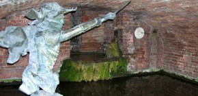 La fontanella del Drago, rappresenta un ragazzo accovacciato che gioca con delle biglie ...