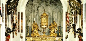 La fontanina battesimale, raffigurante un delfino, è stata realizzata nel 1972 dall...