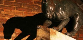 La fontana battesimale bronzea è opera di Giulio Corsini; raffigura una pantera s...