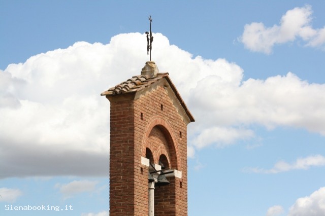 Risalente nella struttura al 1173 , la piccola chiesa di S. Leonardo dapprima occupata dai gerosolimitani, passò ai Cavalieri di Malta e, alla loro soppressione, al demanio, da cui la comprò il nobile Celso Bargagli che, su interessamento dell'arcivescovo Anton Felice Zondadari, la donò alla contrada nel 1818. Fu oggetto di varie modificazioni nel corso dei secoli e gravemente danneggiata dal terremoto del 1798, in seguito al quale l'architetto senese Agostino Fantastici elaborò alcuni progetti di restauro e trasformazione interna che tuttavia non furono eseguiti. Usata come oratorio della Contrada di Valdimontone, la chiesetta venne restaurata nel 1938 che ricostruì la facciata in stile neo-romanico, in laterizio faccia a vista con campanile a vela. L'interno, che si presentava ad aula unica con ricche decorazioni in stucco di matrice seicentesca e più tardi interventi decorativi di carattere neoclassico, si articolava sul retro dell'aula ecclesiale in tre piccole stanze.