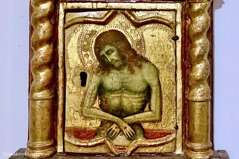 Il formato di quest'opera e il suo tema,  la collegano alla Deposizione dalla Croce conservala all'interno del Museo e suggeriscono che potrebbe trattarsi  di una predella appartenente al polittico parziamente ricostruito, come ritengono diversi specialisti.
