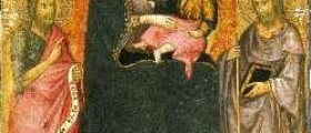 Pannello centrale di un trittico raffigurante la Madonna con il Bambino ed ai lati i Santi Giovanni Battista e Giacomo.