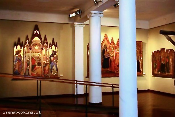 La Pinacoteca Nazionale di Siena, inaugurata nel 1932 nell'attuale sede dei Palazzi Brigidi e Buonsignori, è una delle più importanti raccolte italiane di dipinti su tavola a fondo oro del Trecento e Quattrocento senese. Nella ricchissima raccolta e' documentata la pittura senese dal XII al XVIII sec.
